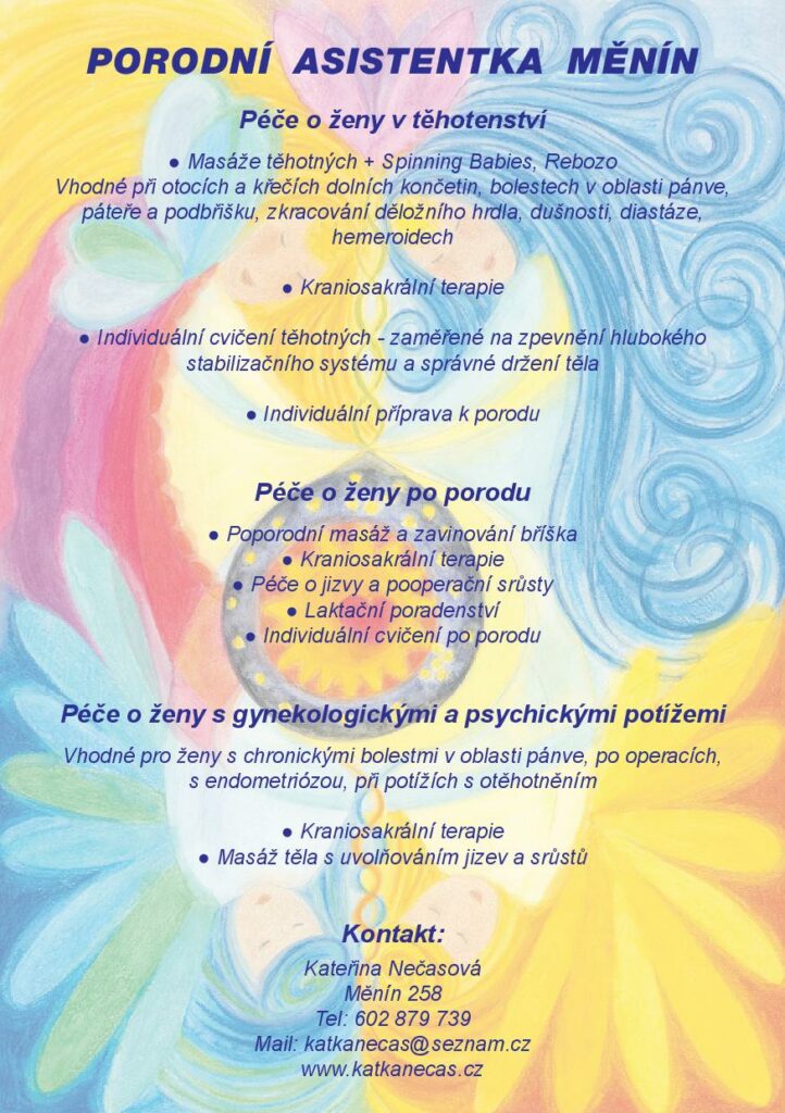 Porodní asistentka Kateřina Nečasová nabízí péči o ženy v těhotenství, po porodu a s gynekologickými a psychickými potížemi.