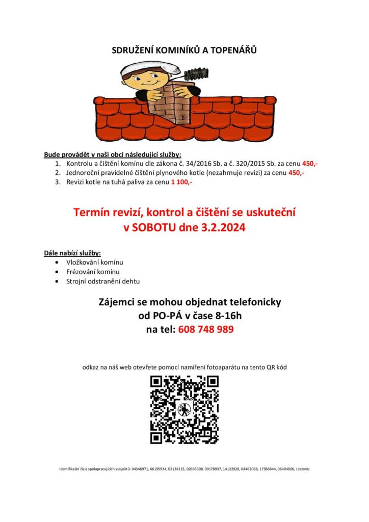 Sdružení kominíků a topenářů bude v sobotu 03.02.2024 provádět: