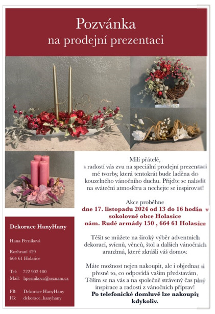Prodejní akce / sokolovna Holasice / 17.11.2024 / 13.00-16.00 hod.