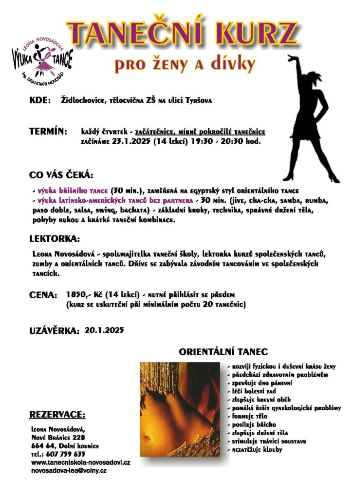 ŽIDLOCHOVICE / 14 lekcí pro začátečnice a mírně pokročilé tanečnice TŠ Novosadovi / tělocvična ZŠ