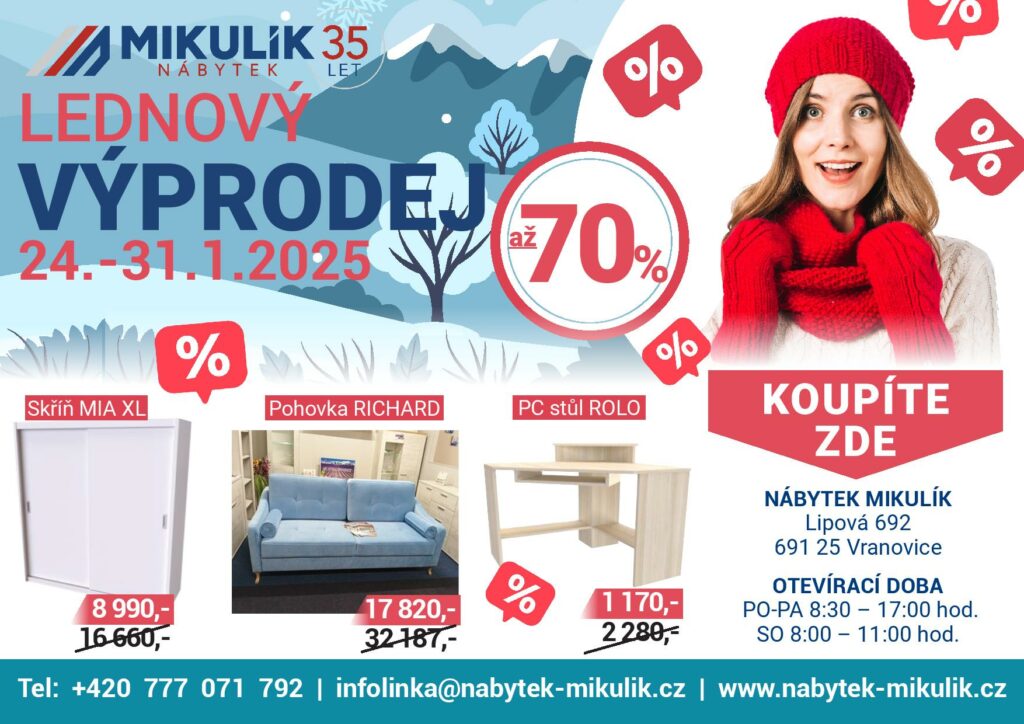 Nábytek Mikulík ve Vranovicích pro Vás připravil velký lednový výprodej nábytku.