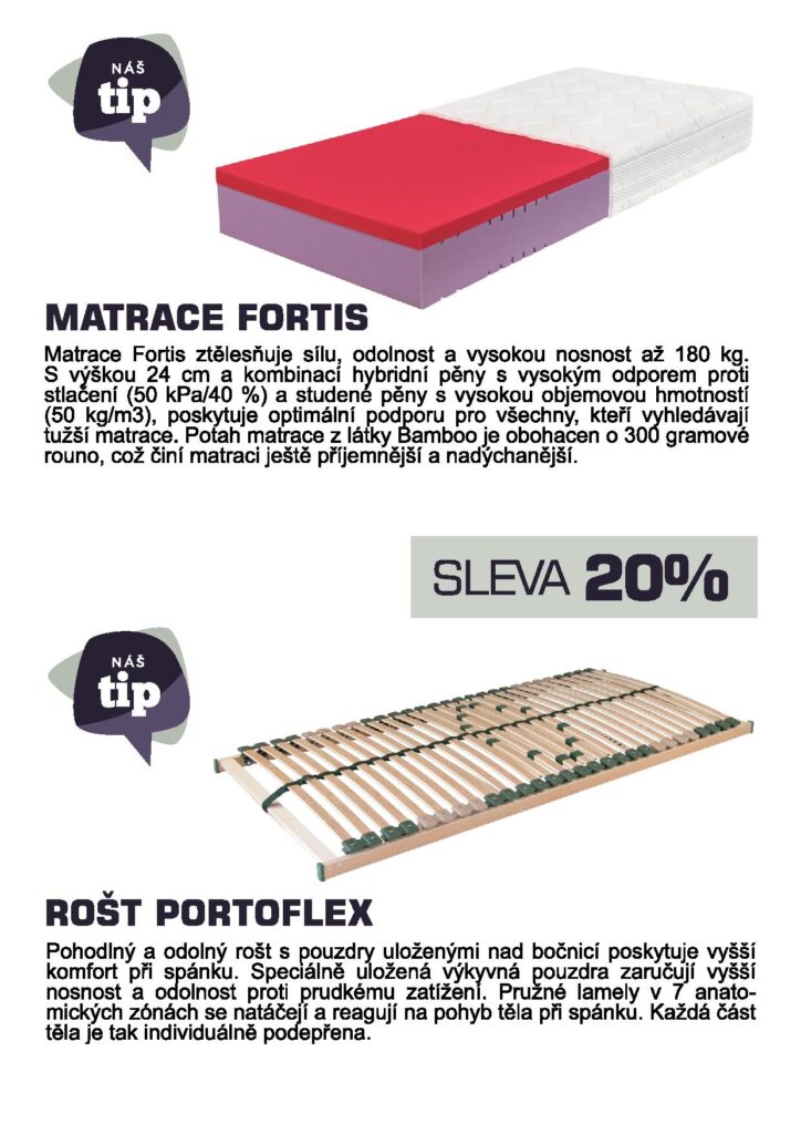 Ložnicové komplety, postele, rošty a matrace budou s mimořádnou 20% slevou.
