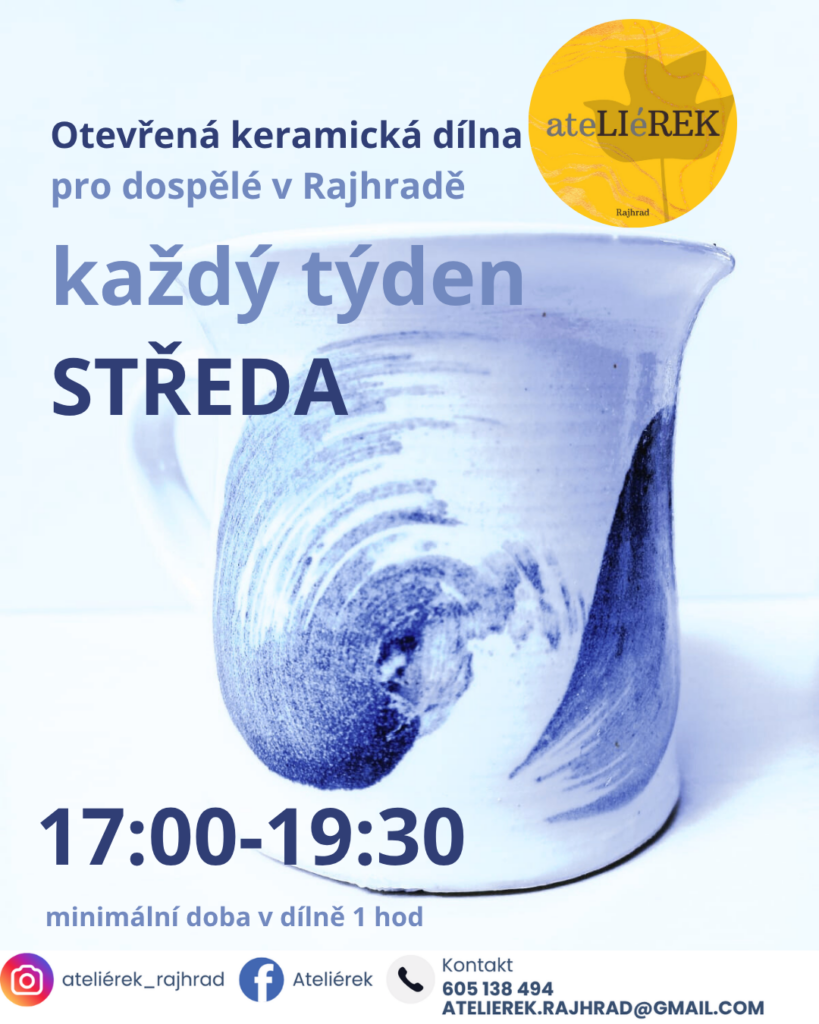 otevřená keramická dílna pro dospělé každou středu 17.00 – 19.30 hod.
