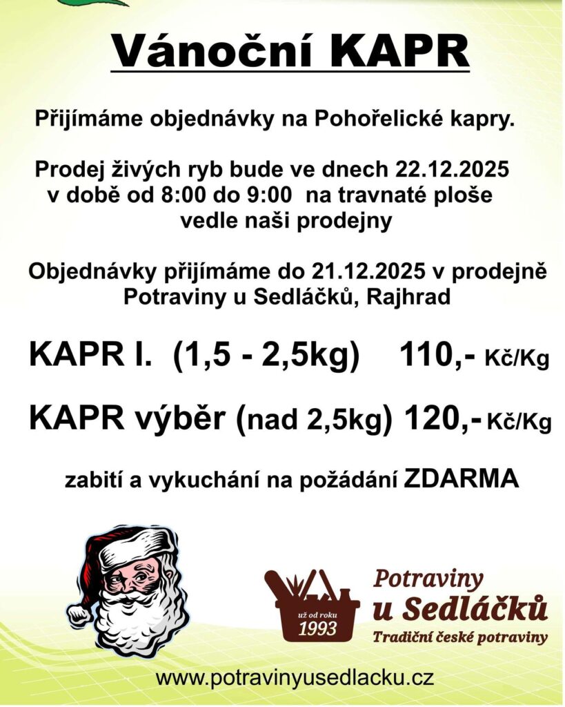 Potraviny u Sedláčků Rajhrad přijímají objednávky na Pohořelické kapry